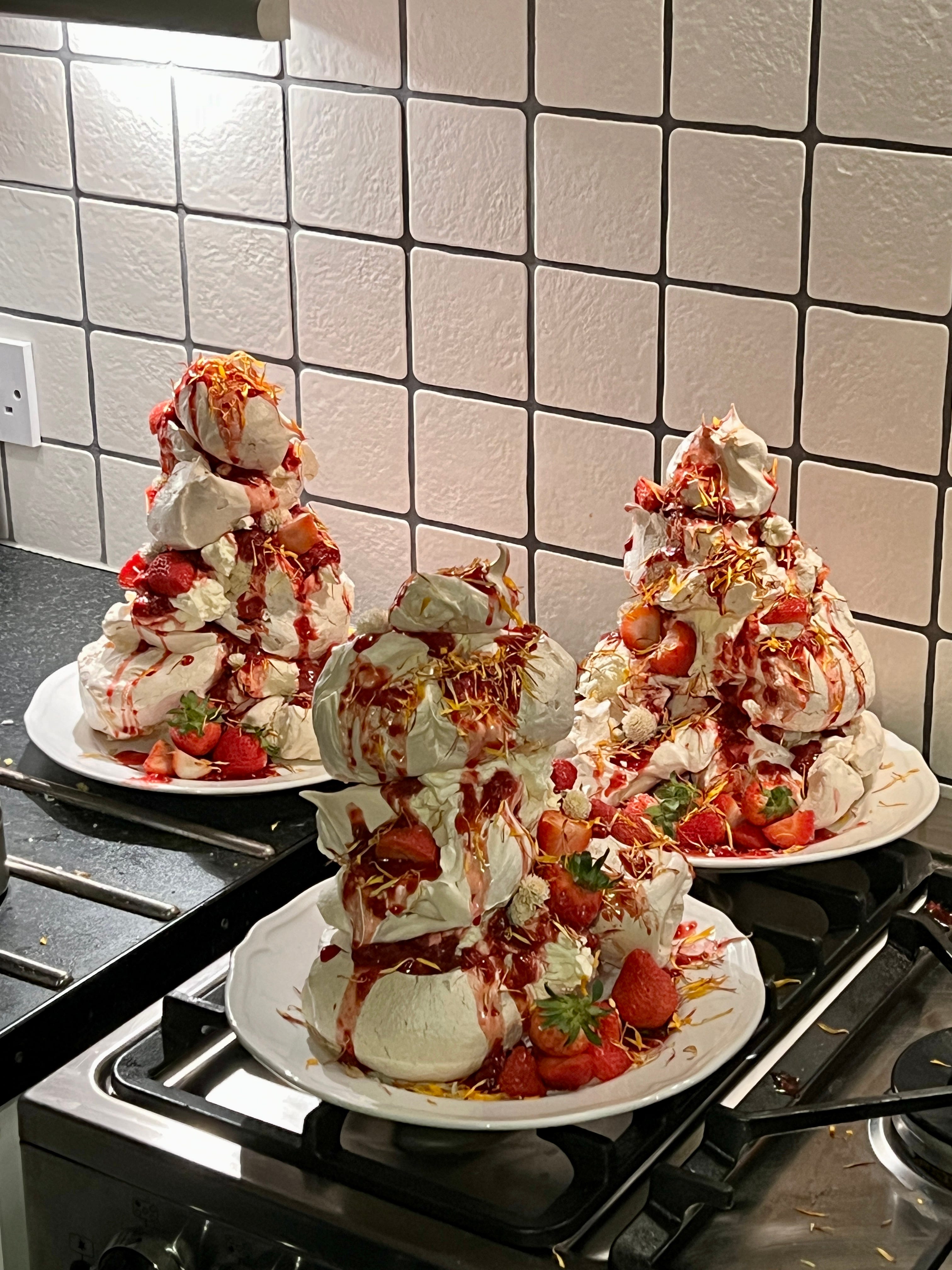 I started to document everything on my Instagram, telling stories of my learnings and my following built slowly. I rescued eight hens as well as two donkeys and was able to work part time for my parents’ hospitality businesses while also driving to London regularly to host supper clubs.. which grew little by little with each one. I did this for the next 5 years, back and forth, usually with a car full of vegetables, eggs and honey before opportunities to cook for people in London became more regular and I decided to leave Wales behind for the time being. Over time, I learnt my style and the way I like to serve food.. I’ve stayed pretty consistent with this. Mostly always sharing plates, mostly vegetarian, and mostly a fun, slightly eccentric pudding to finish.